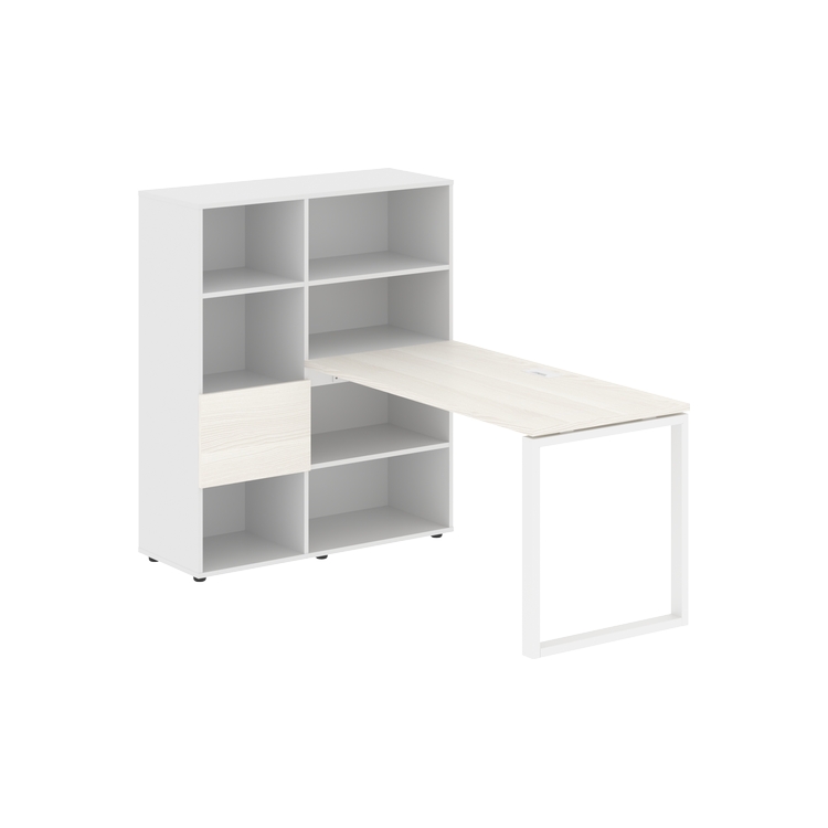 Каркасы стеллажей полностью из ЛДСП т.18 мм с кромками ПВХ т.2 и 0,45 мм, задняя стенка из ЛДСП. Комплектуется малой дверью в цвет столешницы и регулируемыми опорами h= 27 мм.