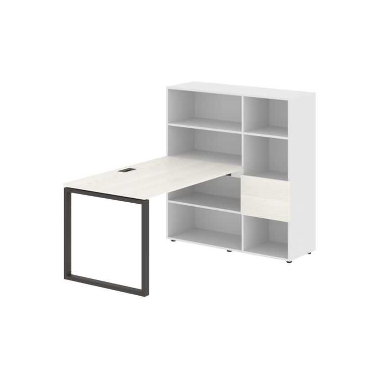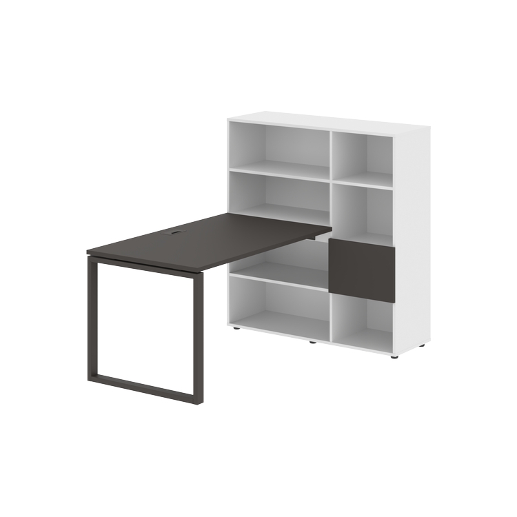 Столешница глубиной 800 мм, комплектуется регулируемой опорой О-образной формы из профиля трубы 60х30, комплектом телескопических траверс и двумя кронштейнами для крепления к стеллажу.
