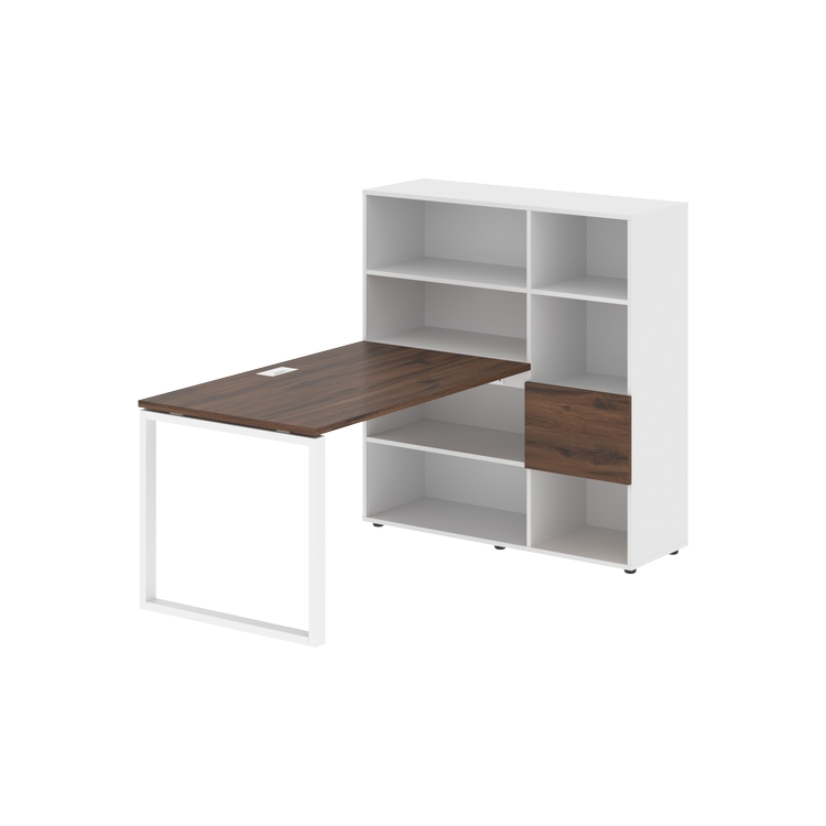 Каркасы стеллажей полностью из ЛДСП т.18 мм с кромками ПВХ т.2 и 0,45 мм, задняя стенка из ЛДСП. Комплектуется малой дверью в цвет столешницы и регулируемыми опорами h= 27 мм.