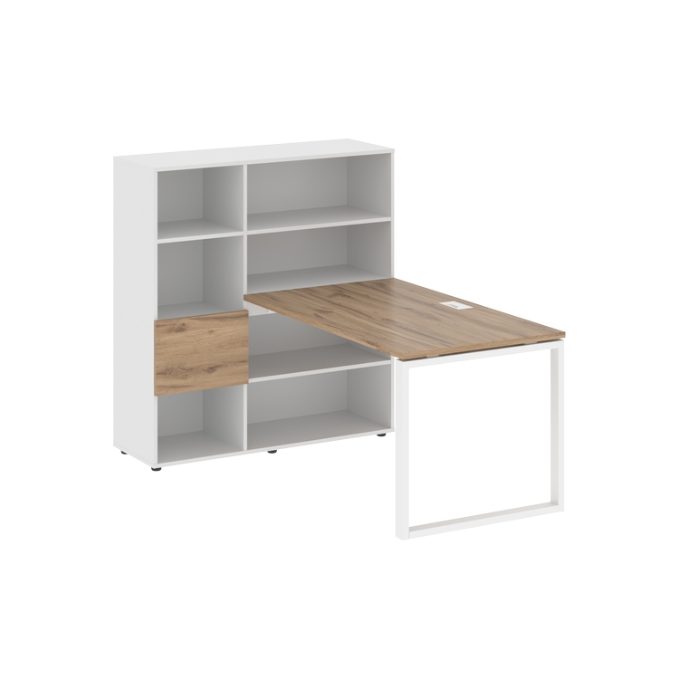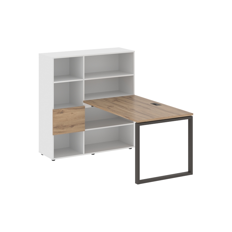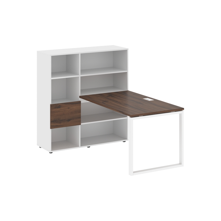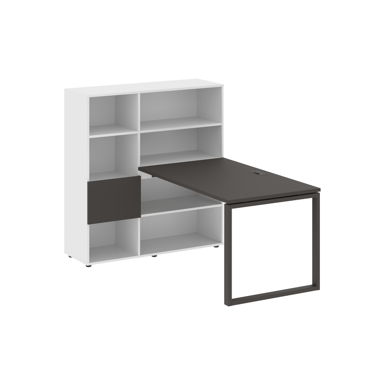 Каркасы стеллажей полностью из ЛДСП т.18 мм с кромками ПВХ т.2 и 0,45 мм, задняя стенка из ЛДСП. Комплектуется малой дверью в цвет столешницы и регулируемыми опорами h= 27 мм.