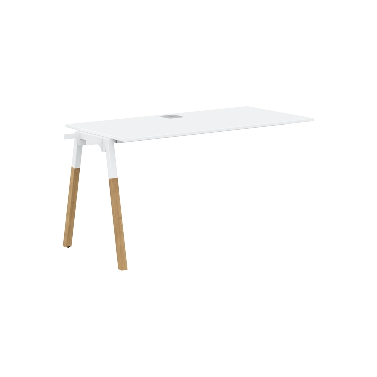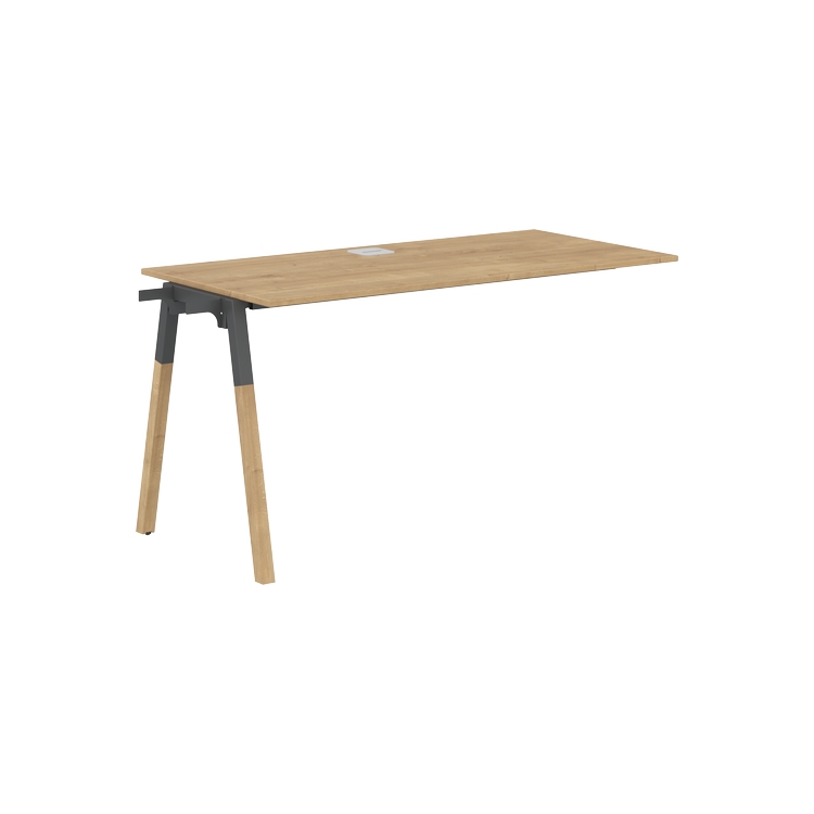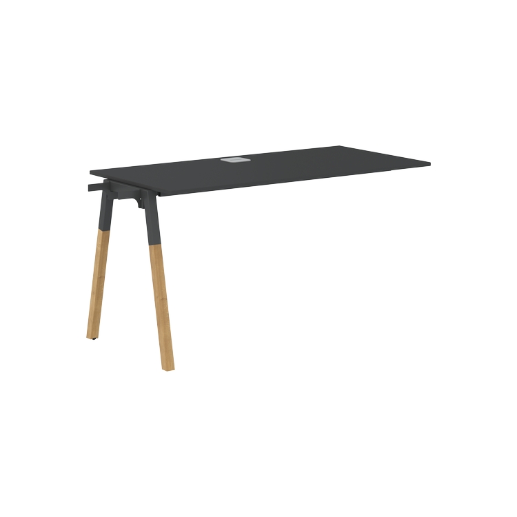 Столешница ЛДСП т.18мм. c кромкой ABS т.2.мм, комплектуется квадратной заглушкой кабель-канала по центру, 2-мя траверсами и промежуточной комбинированной опорой А-образной формы, верхняя часть из профиля трубы 40х40мм и нижняя часть из материала – бук; отделка – масло-воск.
