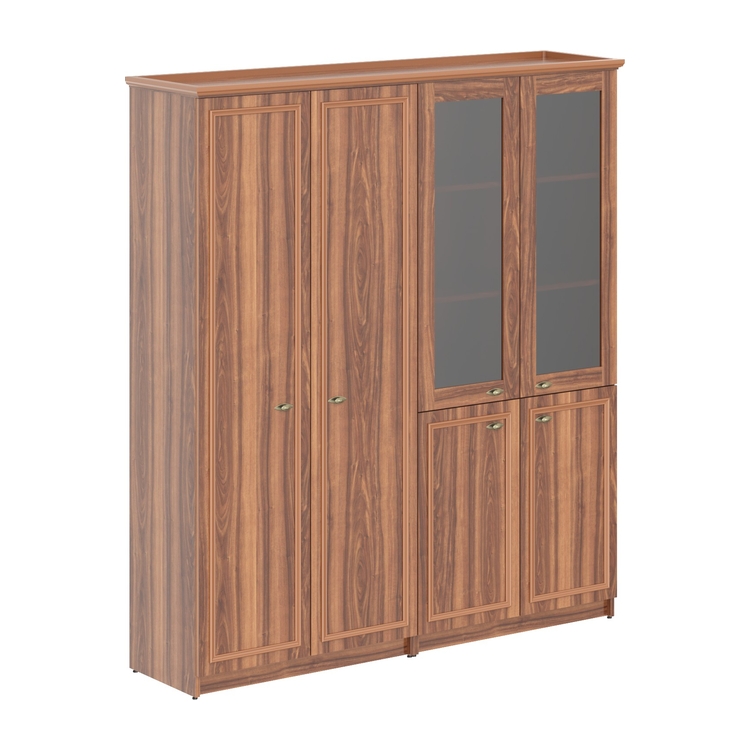 Коллекция изготовлена с учетом всех особенностей классической мебели – теплые тона натурального дерева, карнизы, профильные рамки, накладной орнамент, ручки, стилизованные «под бронзу».