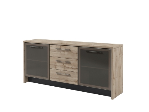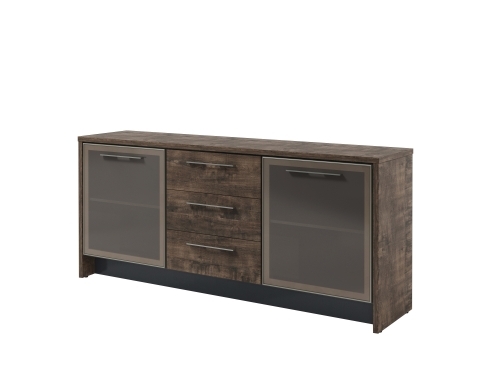 Тумба с 2 дверьми и 3 ящиками. Двери стеклянные в алюминиевом профиле.