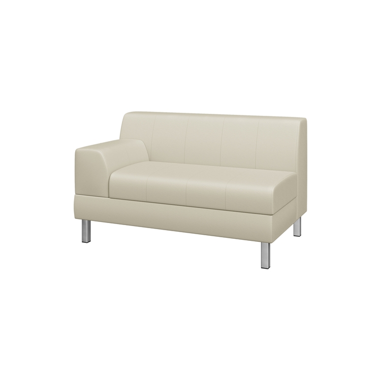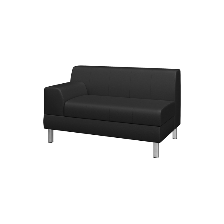 Как и вся коллекция, 2-местный модуль с правым подлокотником может быть выполнен в обивке из ткани или искусственной кожи, что обеспечит легкий уход за мебелью.
