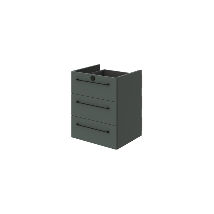 Каркас модуля выполнен из ЛДСП Зеленый камень 18 мм, детали каркаса облицованы противоударной кромкой ABS 0,8 мм. Фасады ящиков выполнены из ЛМДФ Зеленый камень 18 мм с поверхностью PerfectSense Matt с лицевой стороны, торцы облицованы противоударной кромкой ABS 1мм PerfectSense Matt. Задние стенки и донья ящиков выполнены из ЛДСП Антрацит 16 мм, облицованы кромкой 0,4 мм.